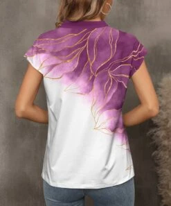 Discount π Pink Daisy White & Purple Abstract Short-Sleeve Notch Neck Top – π© Women π―