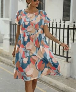 Coupon π Pink Daisy Mauve & Blue Abstract Floral Short-Sleeve Shift π Dress – π© Women π