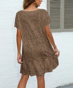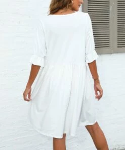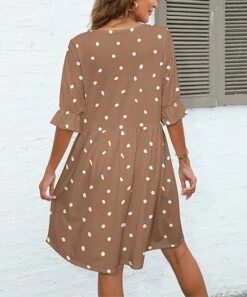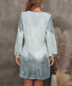 Coupon 𧨠Pink Daisy Sage & Gray Palm Leaves Bishop-Sleeve A-Line π Dress – π© Women π€©