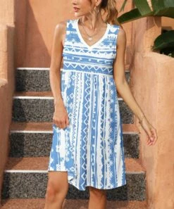 Budget β€οΈ Pink Daisy Blue & White Floral V-Neck Empire-Waist π Dress – π© Women & Plus π