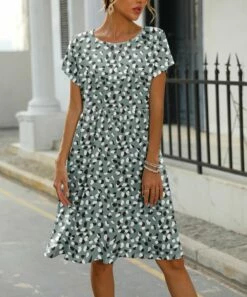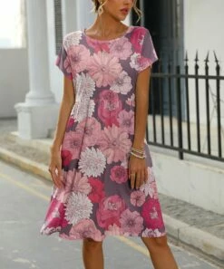 Budget π Pink Daisy Blue & White Abstract Pocket Short-Sleeve A-Line π Dress – π© Women π