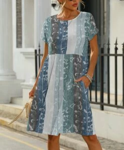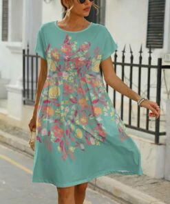 Buy β€οΈ Pink Daisy Cream & Blue Floral Flutter-Sleeve A-Line π Dress – π© Women π