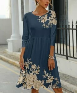 Buy β¨ Pink Daisy Navy & Beige Floral Three-Quarter A-Line π Dress – π© Women & Plus π