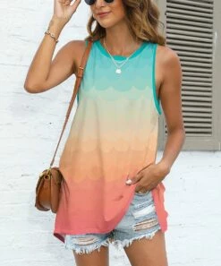 Best deal π€© Pink Daisy Teal & Orange OmbrΓ© Split-Back Swing Tank – π© Women & Plus βοΈ