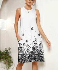 Top 10 π Pink Daisy White & Black Floral Pocket Sleeveless Shift π Dress – π© Women π₯°