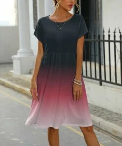 Wholesale β Pink Daisy Light Blue & Red Round Neck Puff-Sleeve π Dress – π© Women π
