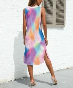 Cheap π₯ Pink Daisy Pink & Blue Abstract Side-Slit Sleeveless Midi π Dress – π© Women π