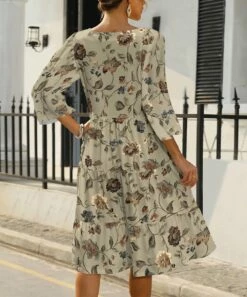 Best Sale β¨ Pink Daisy Gray & Maroon Floral Tiered π Skirt V-Neck π Dress – π© Women β