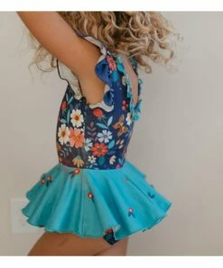 Budget π Oopsie Daisy Navy & Pink Floral π Skirted Angel-Sleeve Leotard – π§ Girls π―
