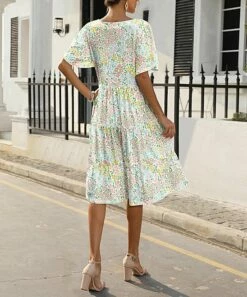 Best reviews of π₯° Pink Daisy Teal Three-Quarter Sleeve A-Line π Dress – π© Women π₯