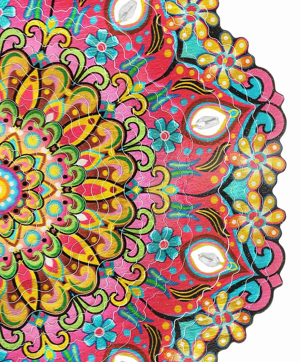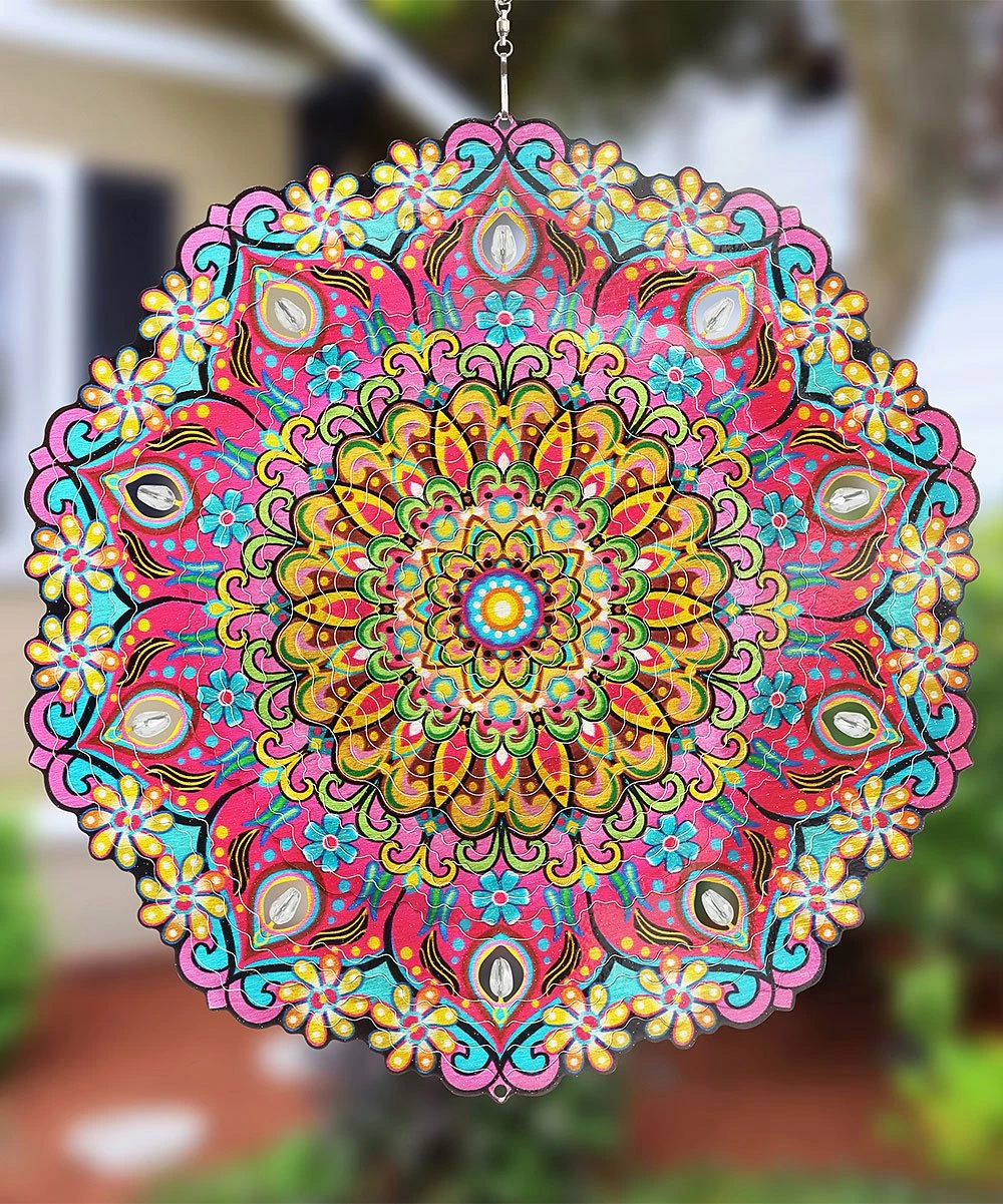 This 3-D hanging spinner sports an ever-changing shape and color pattern that shifts as it catches the wind.