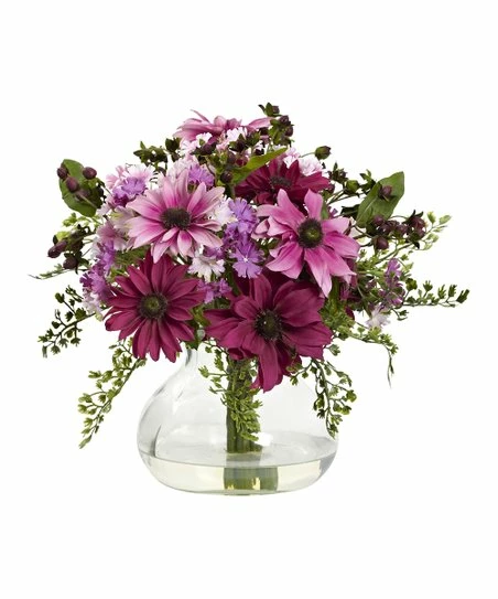 Brighten up your space with this arrangement offering vivid hues set in a classic glass vase with artificial water.