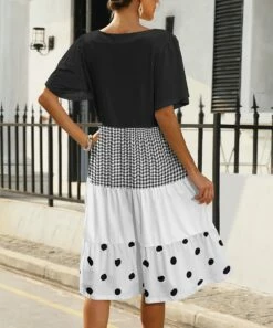 Greet the weekend in comfort while wearing this dress that features a flattering elastic waist and airy short sleeves. A crewneck enables you to add a variety of necklaces and side pockets manage small essentials.
