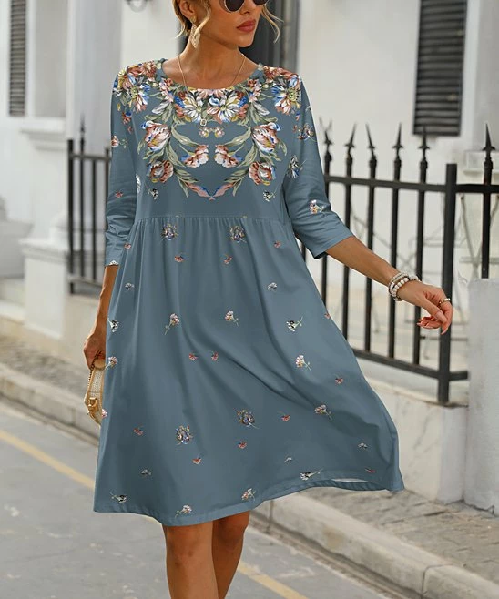 Flow through the room in this casual A-line dress featuring a gathered waist and half-length sleeves for just-enough coverage.