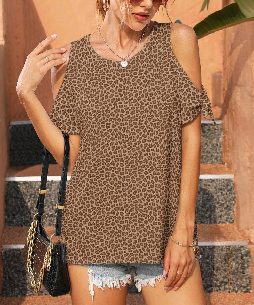 Slip into this lightweight casual tee that features a shoulder-baring design and an expressive graphic for a whiff of boho style.