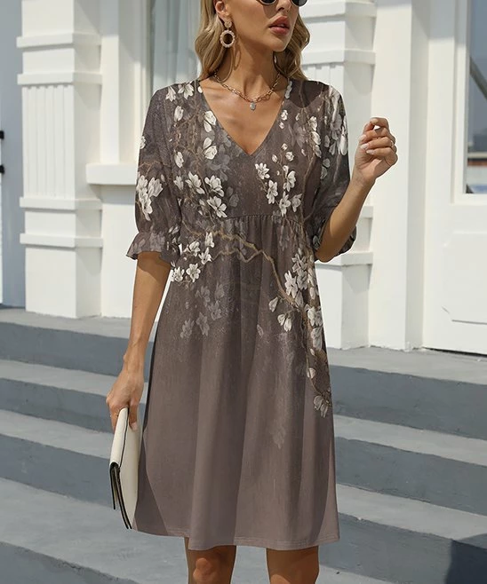 This dress gets a flowy boost from a high waist while ruffles accent the sleeves.