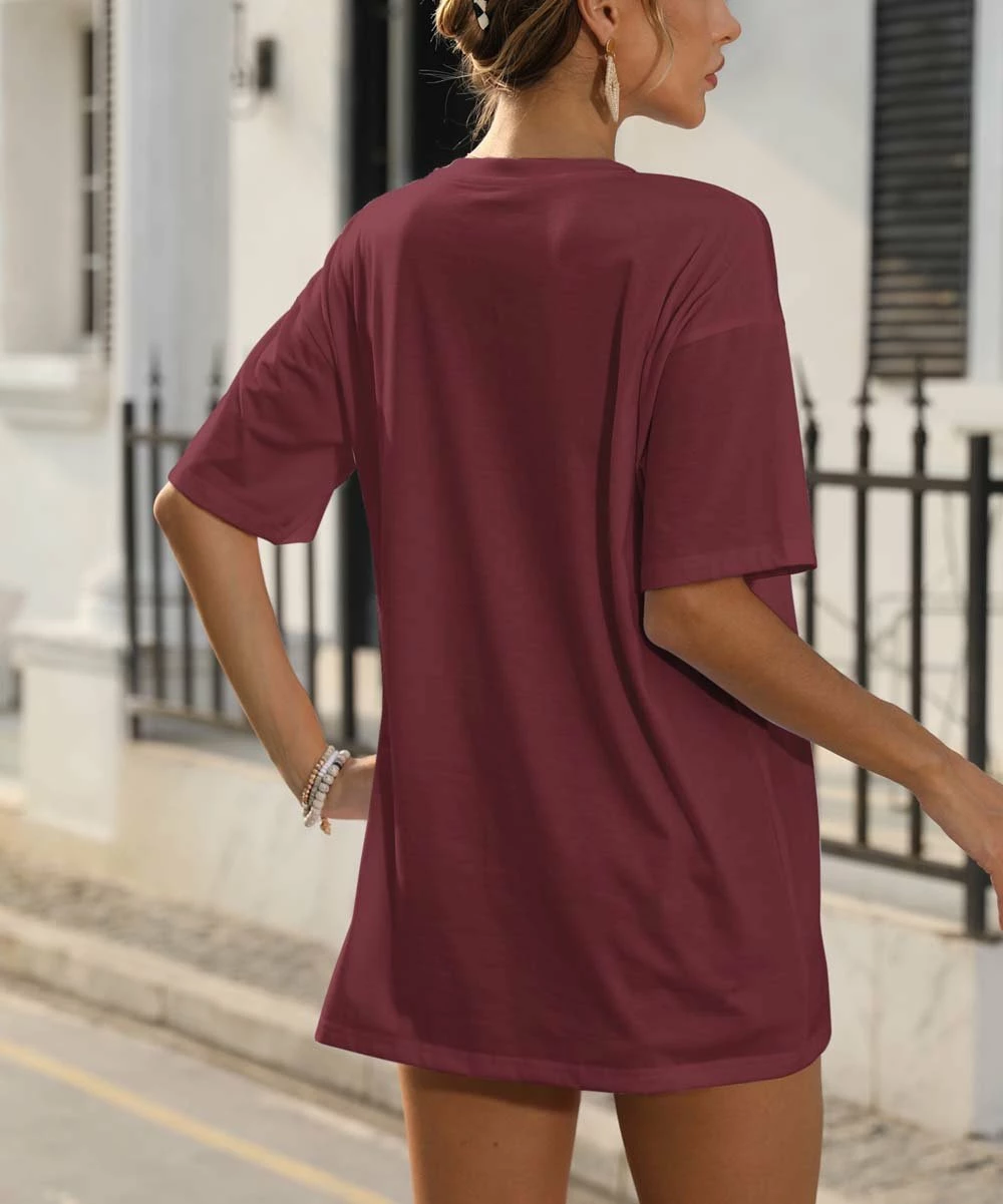 Casual, short-sleeve tee with an oversize fit for versatile styling and a cheerful print with a seasonally spirited design. Stretch-imbued fabric offers easygoing wear.
