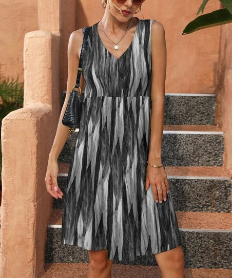 This stretch-infused dress is designed with a v-neckline and a flattering empire waist. A playful print adds eye-catching appeal.