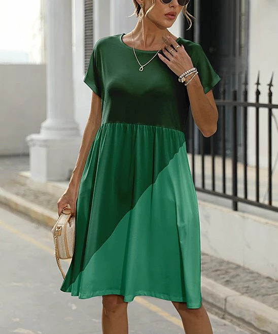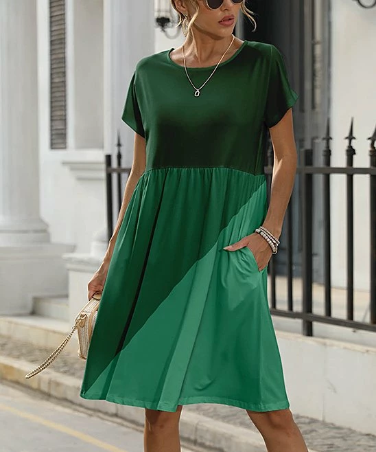 This go-to A-line dress boasts casual style with short sleeves and a round neckline. Pockets at the sides add convenience.