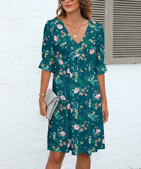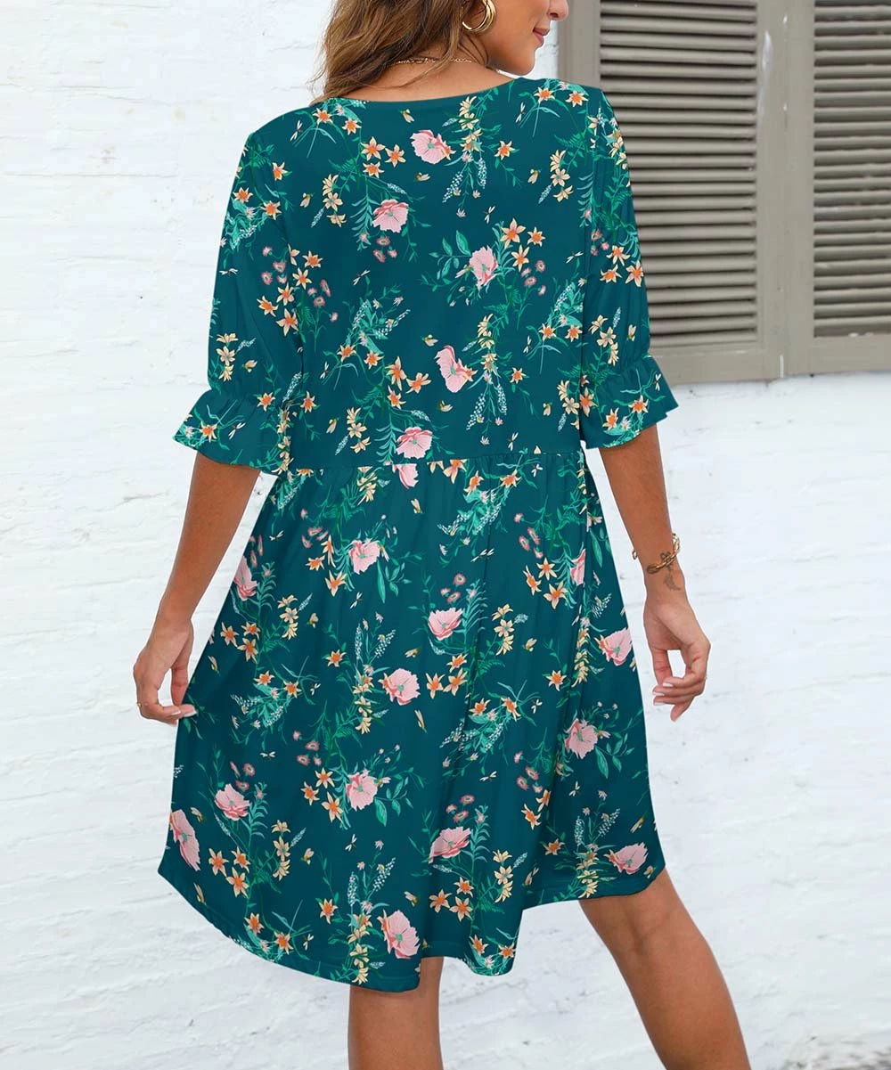 Refresh your wardrobe with this A-line dress designed with a v-neckline and half poet sleeves.