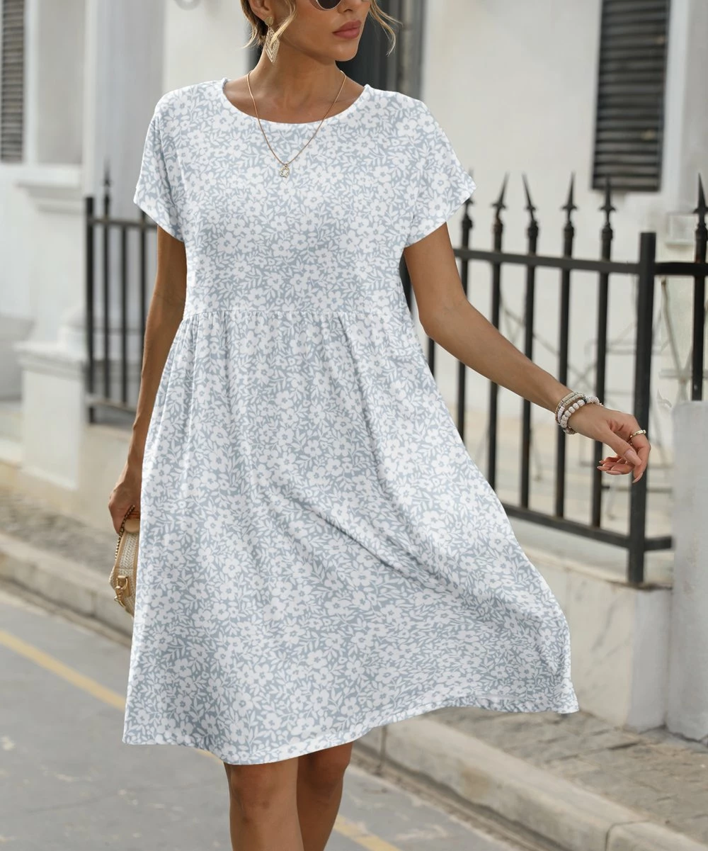 Add a pop of print to your wardrobe with this patterned A-line dress featuring pockets.