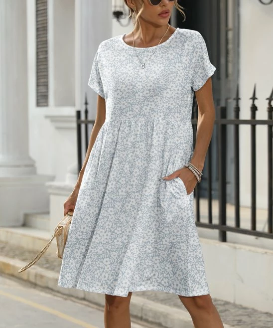 Budget β€οΈ Pink Daisy Blue & White Floral V-Neck Empire-Waist π Dress – π© Women & Plus π