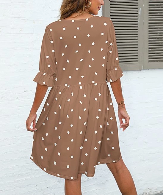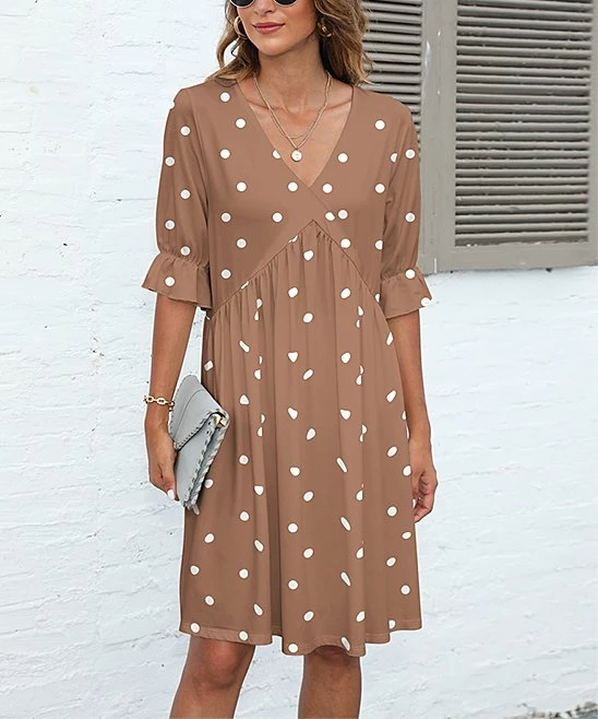 Create an elegant look with this ruffled half-sleeve dress featuring a v-neckline that meets a flowy empire waistline.