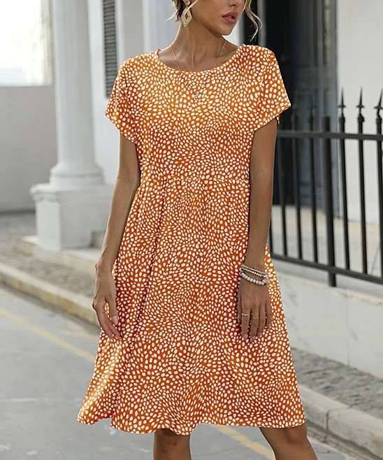 This go-to A-line dress features short sleeves and a round neckline. Pockets at the sides add convenience.