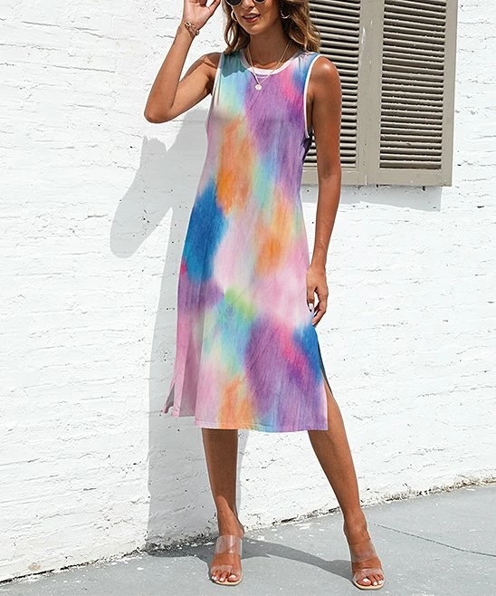 An allover print brings vibrant style to this sleeveless midi dress finished with a breezy vented hem.