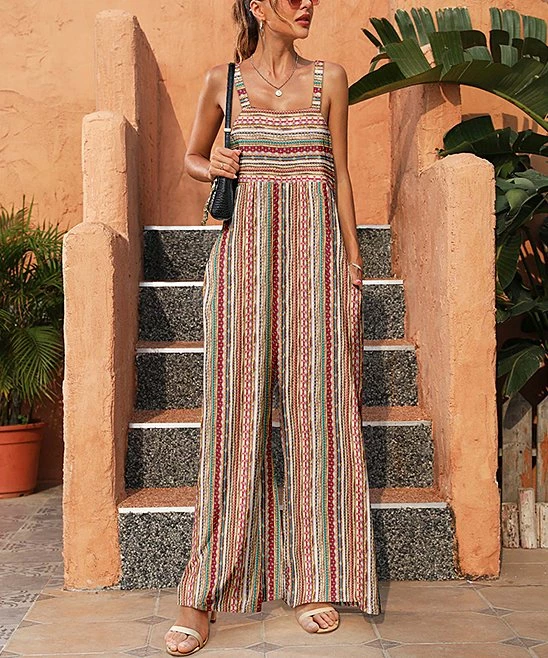 Breezy and chic, this jumpsuit features flowing wide legs, a flattering square neckline and a cool sleeveless design.