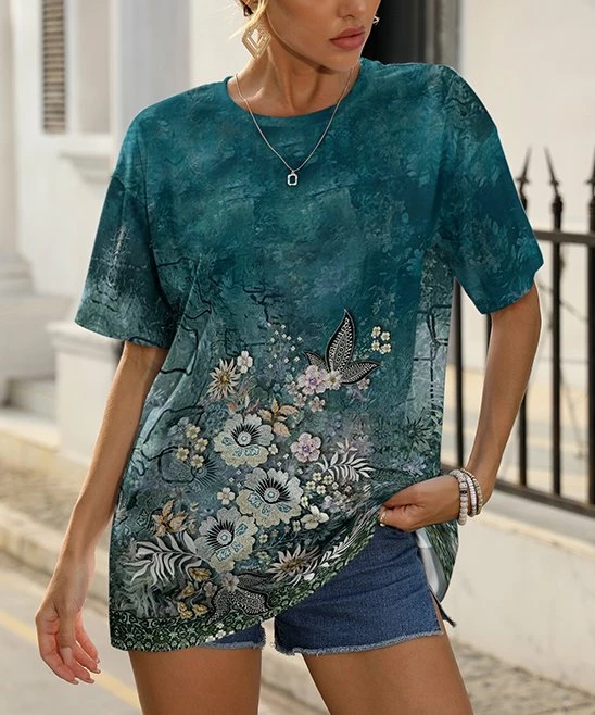 Elevate your basics collection with this short-sleeve tee designed with a playful print and crew neckline.