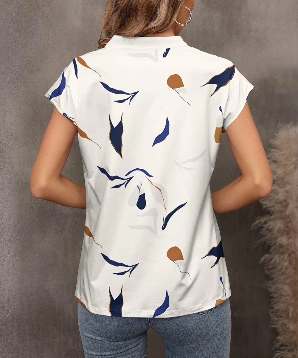 Cap sleeves and a notch neckline define this comfortable top that features a bit of stretch.