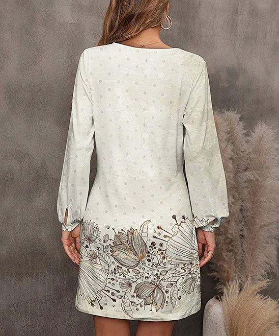 A-line dress fashioned with bishop sleeves. A waist tie completes the look.