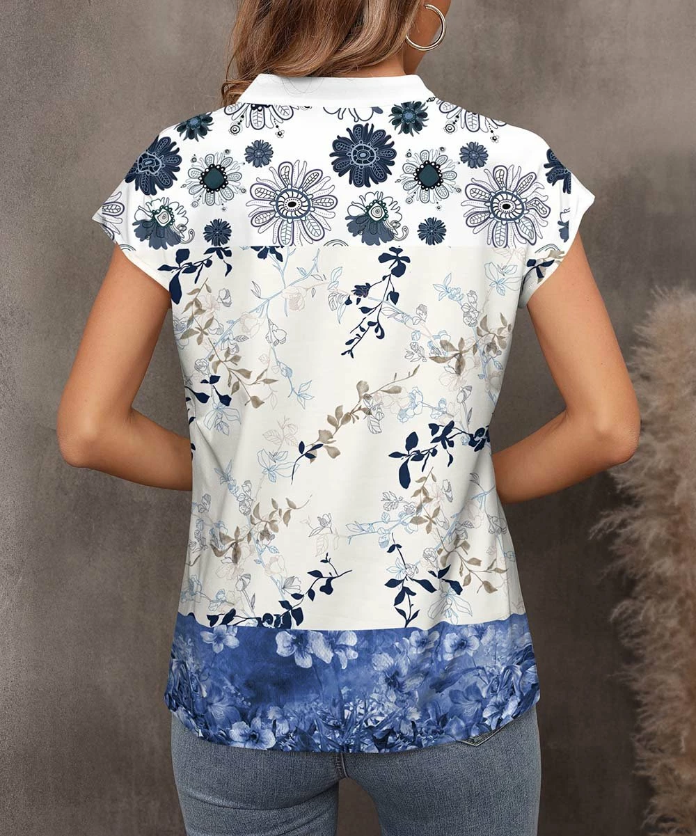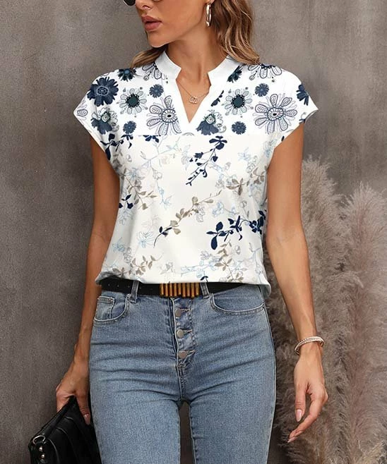 A notch neck top featuring breezy cap sleeves and a hint of stretch.