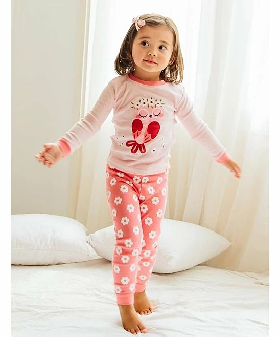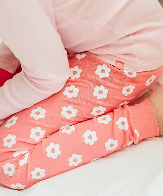 - Includes pink graphic long-sleeve top and pink daisy pants (two pieces total)