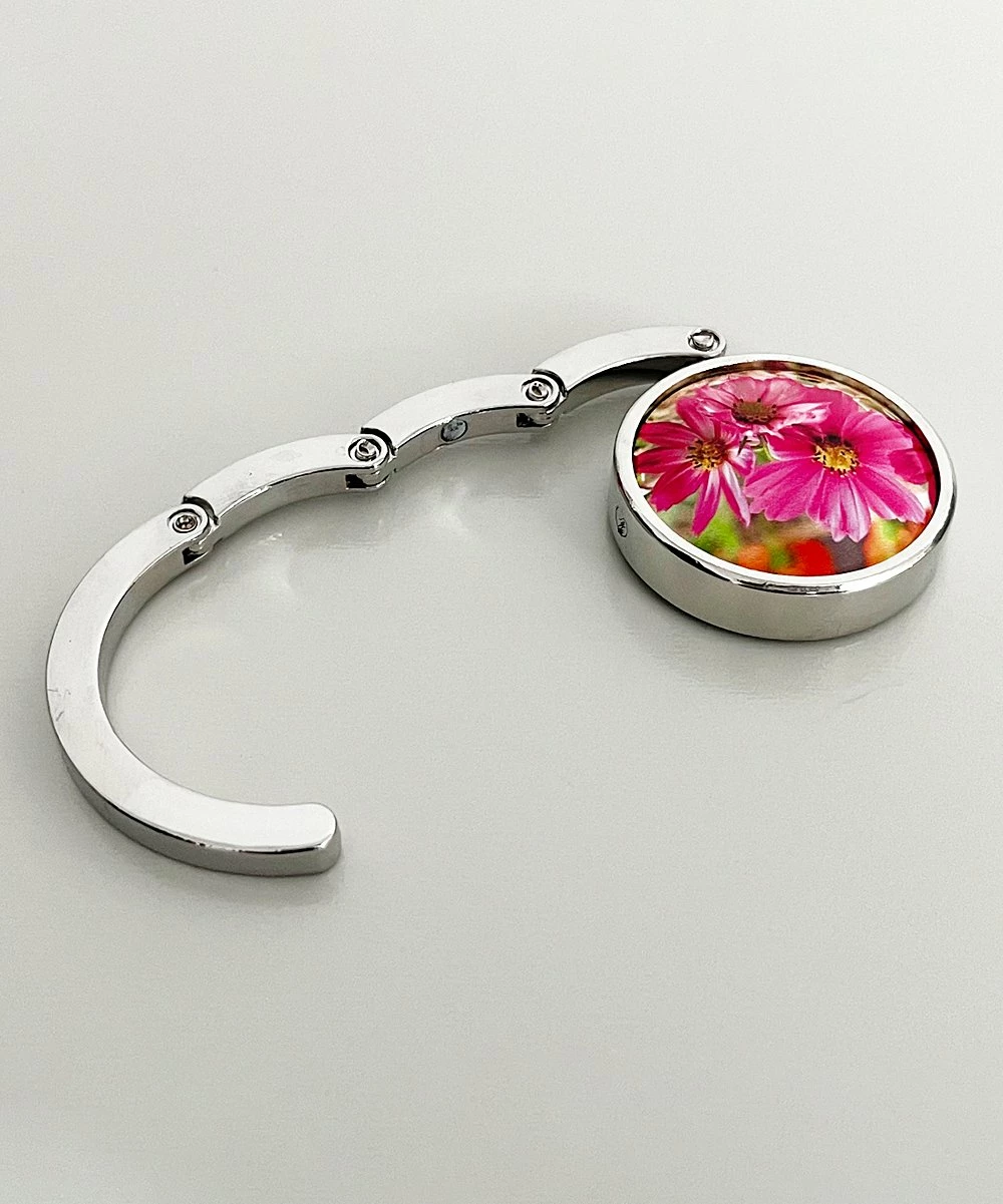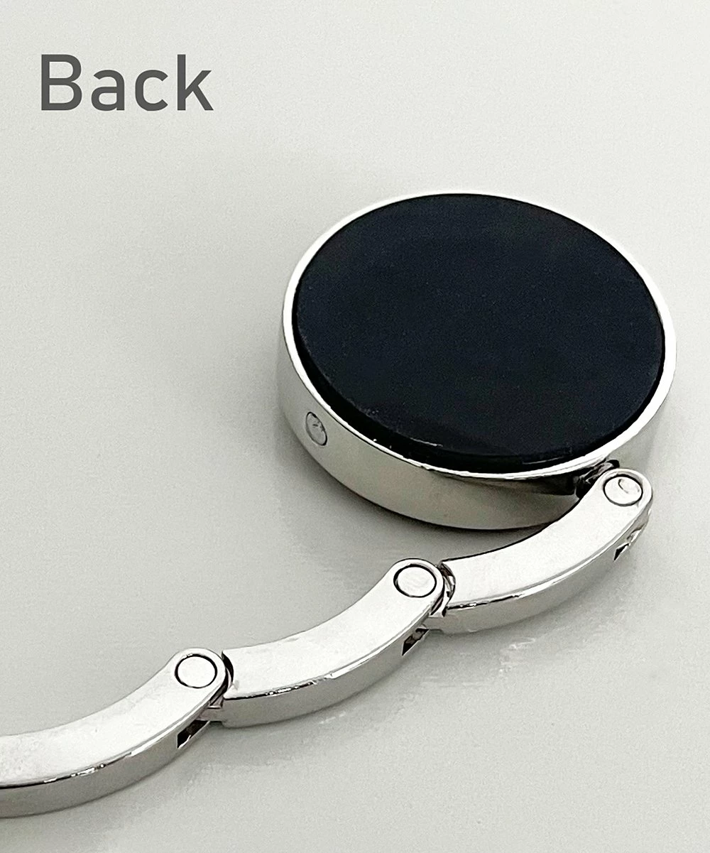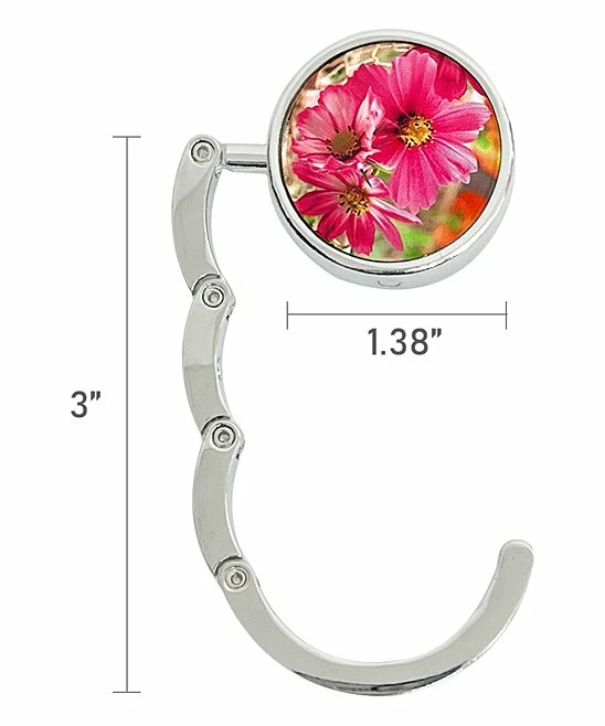 Hang your purse or coat from the table with this compact, foldable hook fitted with a non-slip rubber back and a magnetic closure for easy transport. A floral design adds a pop of color.